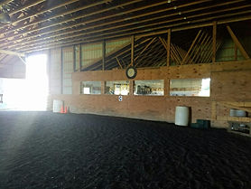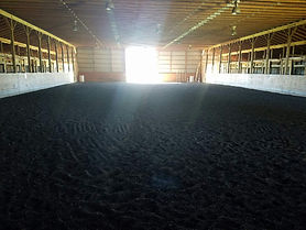 Indoor arena is 60 x 120 with excellent footing that is a mix of 2" of washed, angular sand and 1" of Equiturf crumb rubber